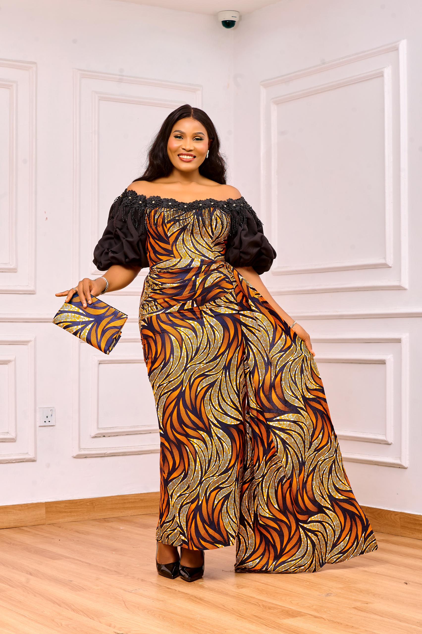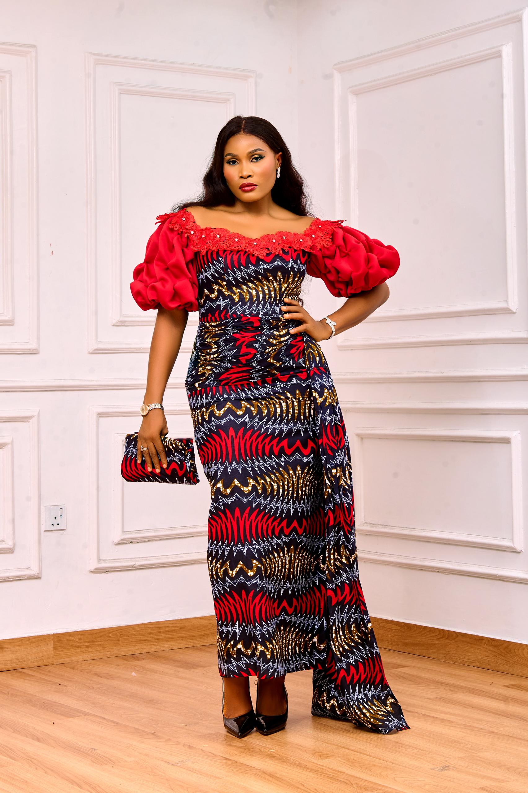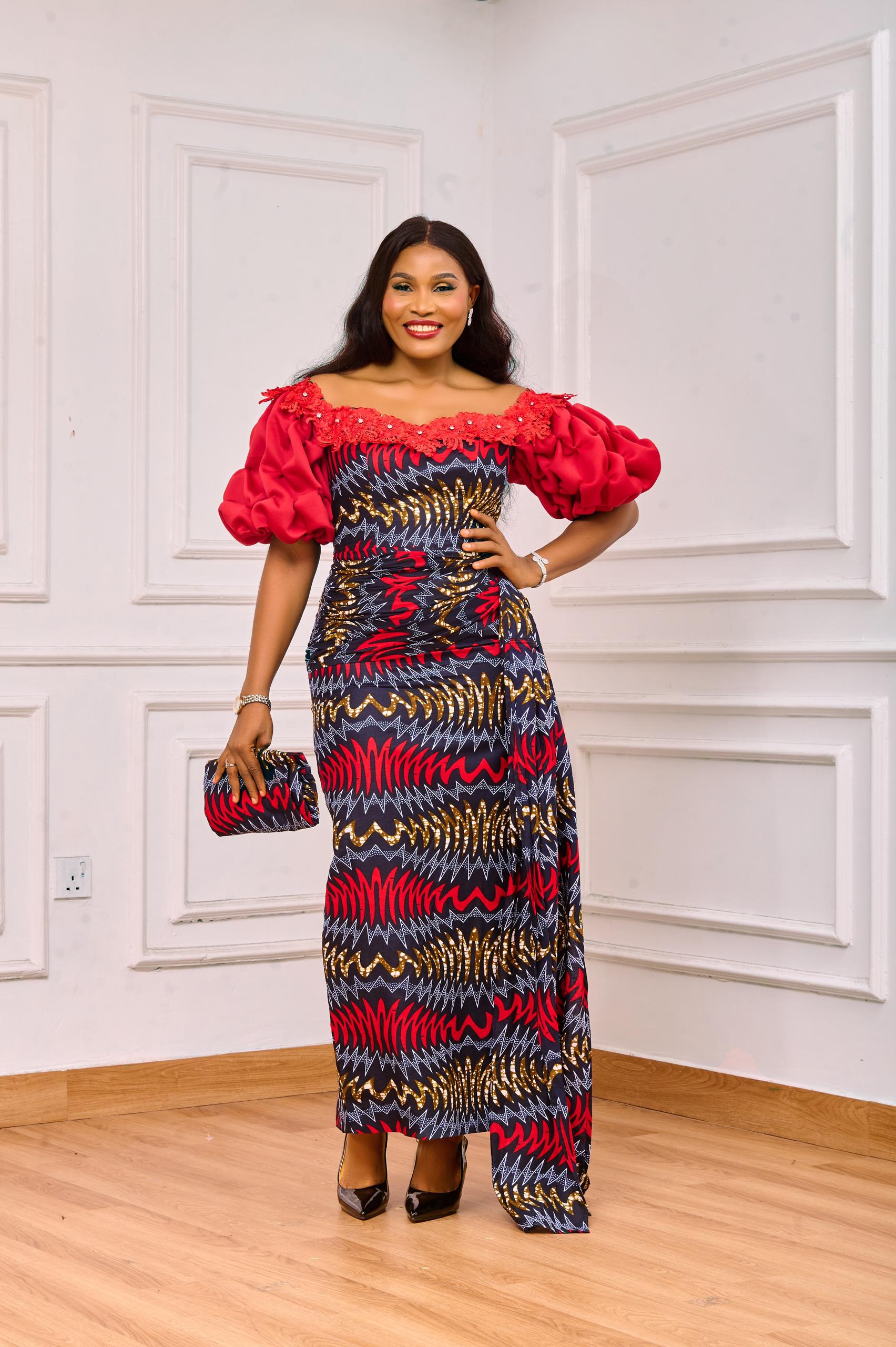 Ankara Dress with a Scuba Hand Detailing, 100% Cotton