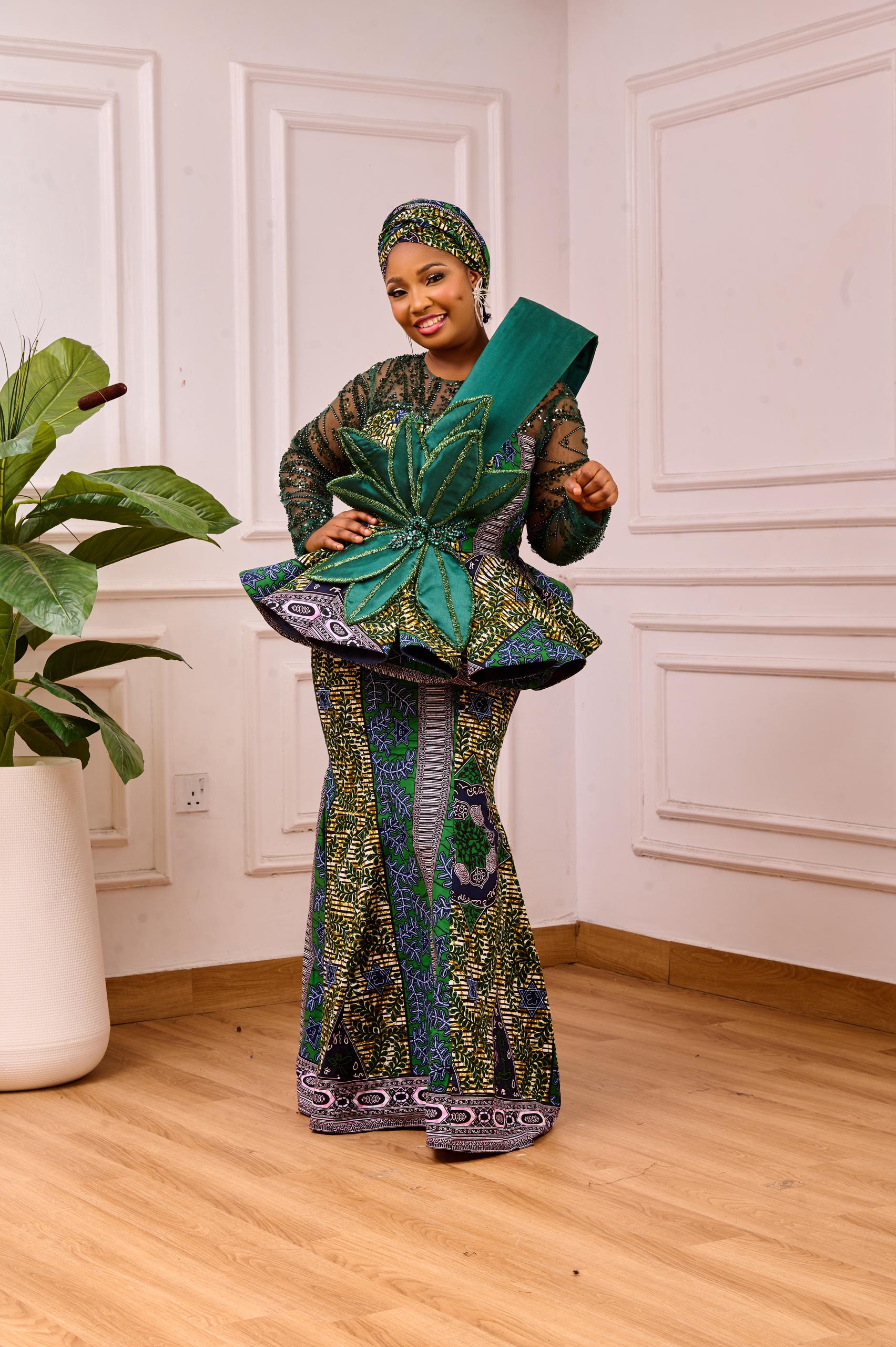 KDA Gored Skirt And Peplum Blouse. Cape details and floral embellishement. 100% cotton fabric